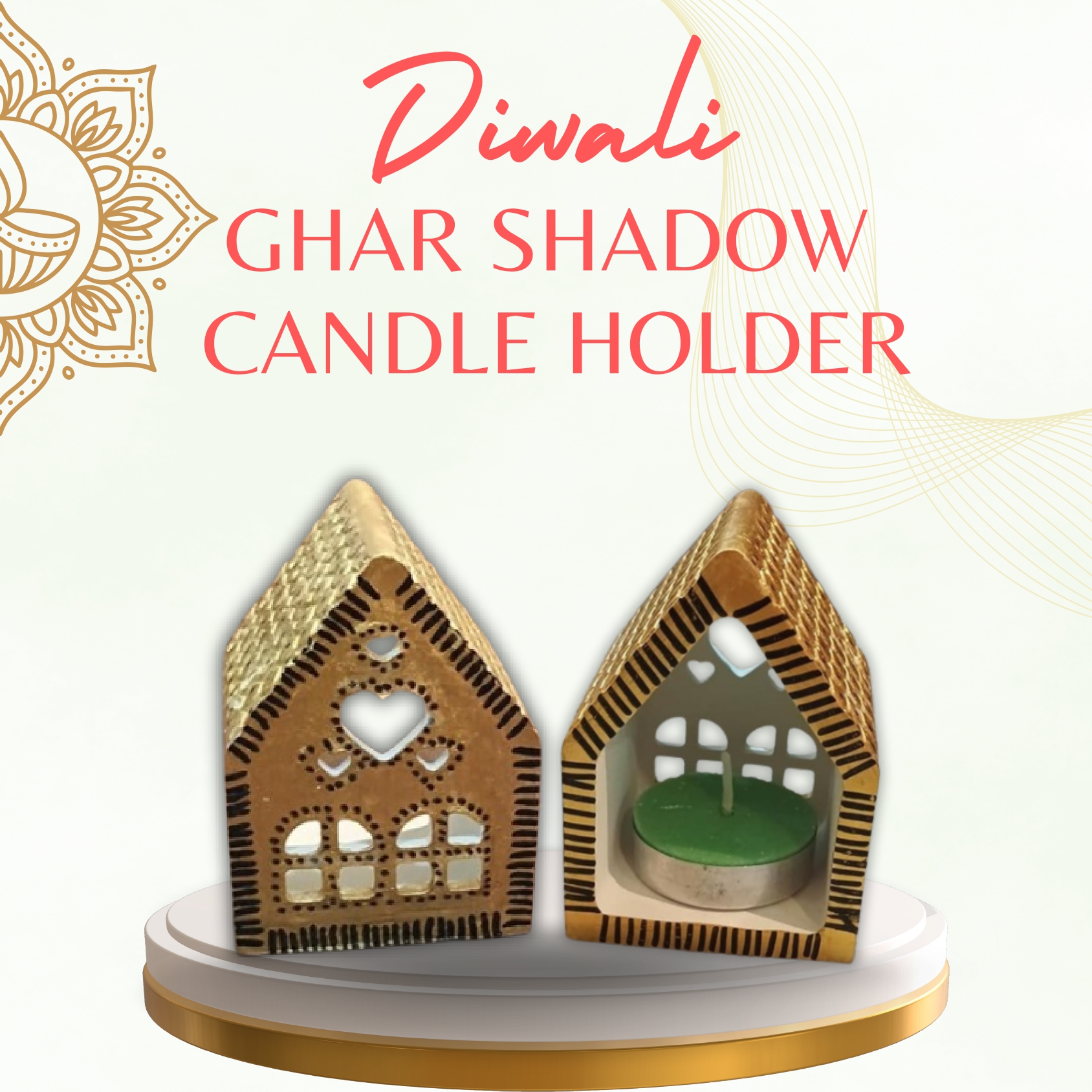 Deemeetastic Golden Shadow House Tea Light Candle Holder, Handmade, Diwali, Rakshabandhan, Christmas Gifting.