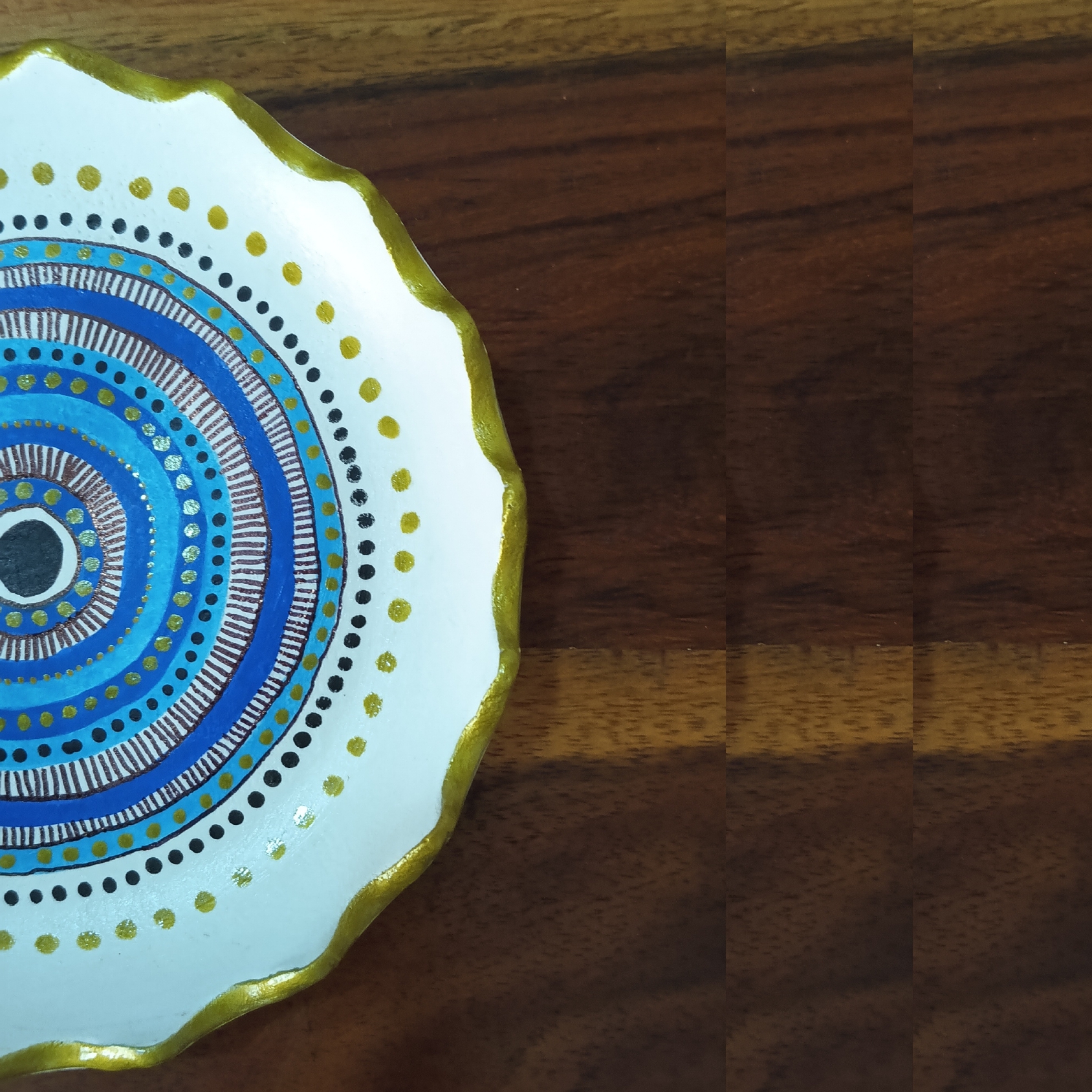 • HANDCRAFTED DESIGN: Each tray is individually handmade and hand-painted with an intricate Evil Eye pattern featuring concentric circles in beautiful blue and gold accents
