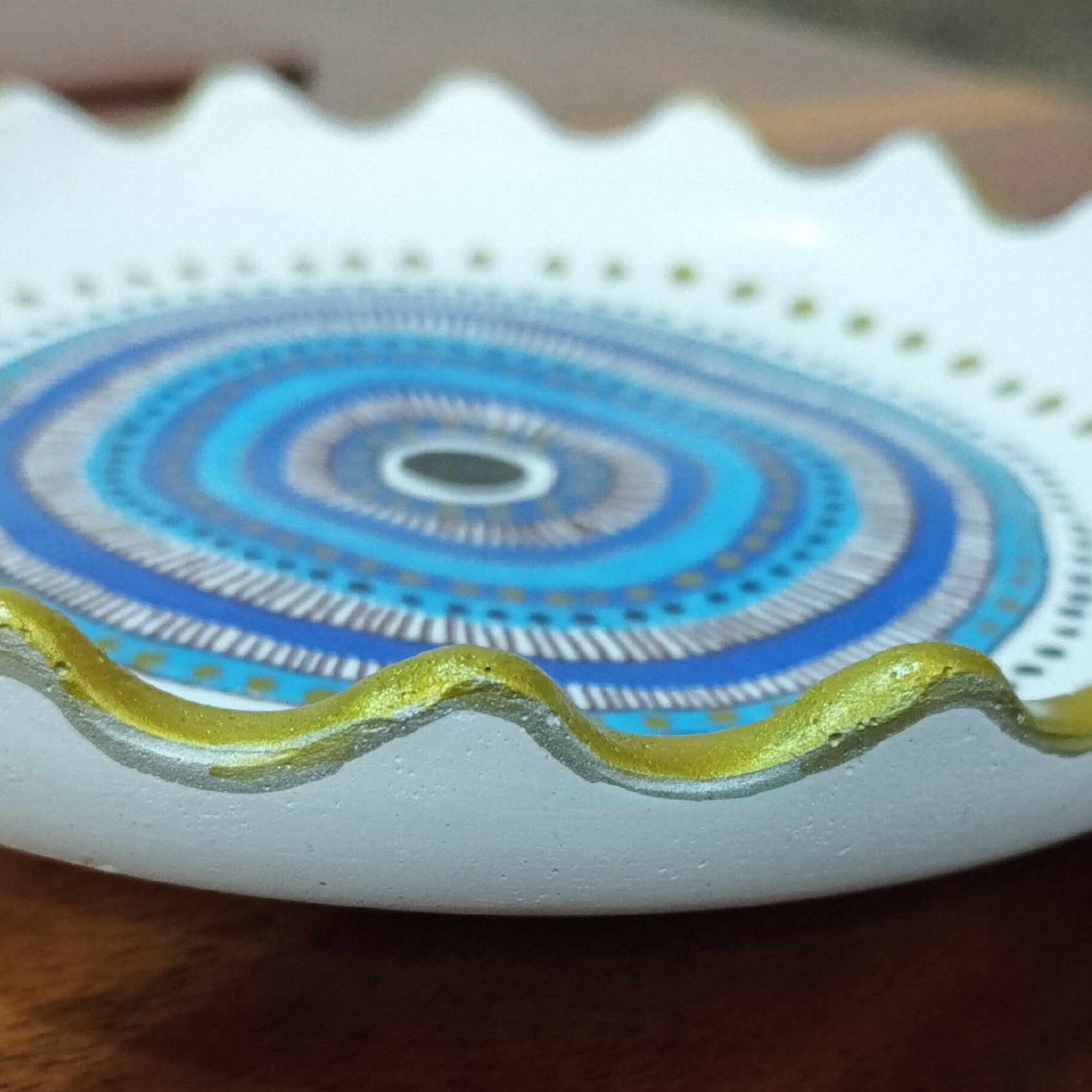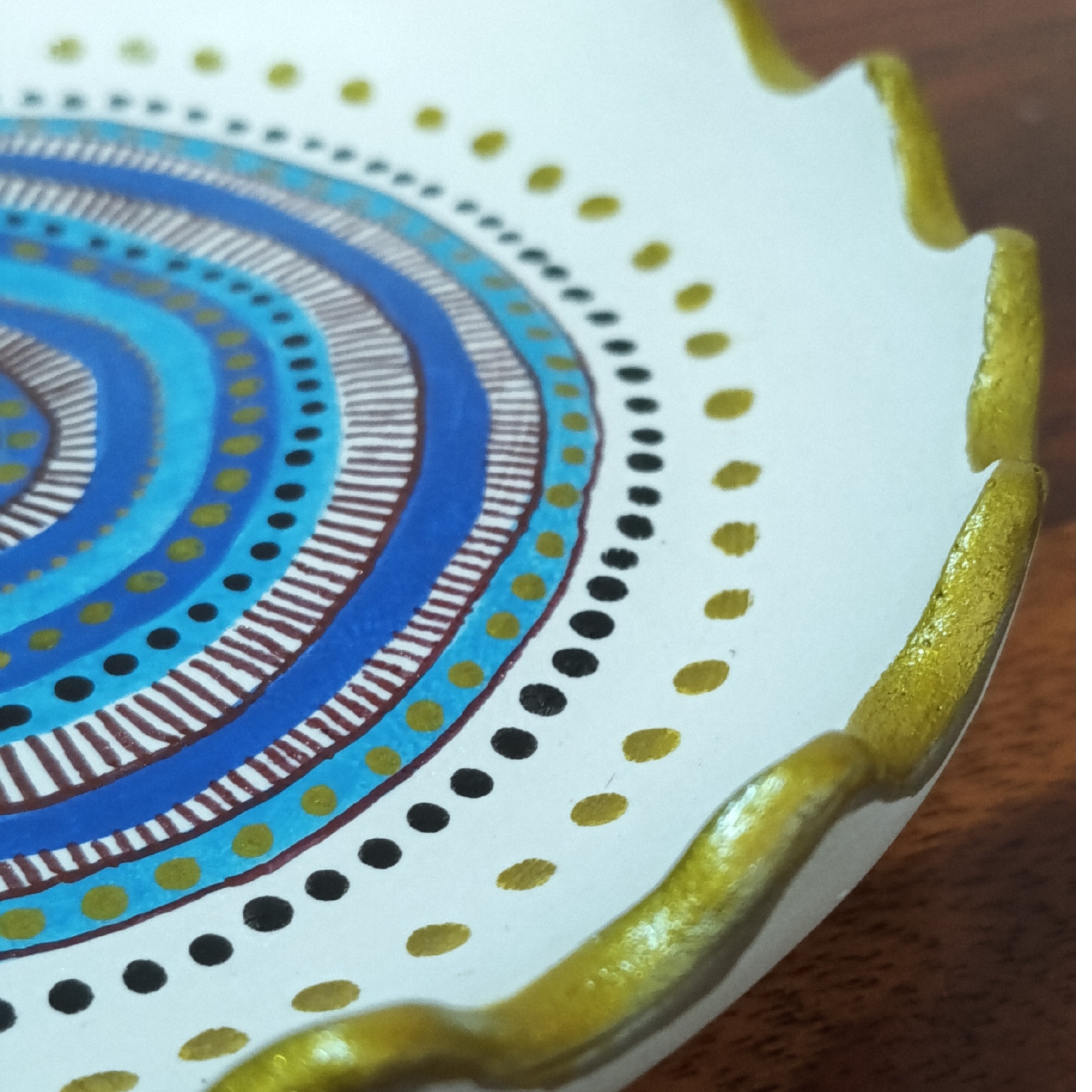 • ARTISTIC DETAILS: Features a stunning mandala-inspired pattern with detailed dot work, geometric designs, and a scalloped edge trimmed with metallic gold