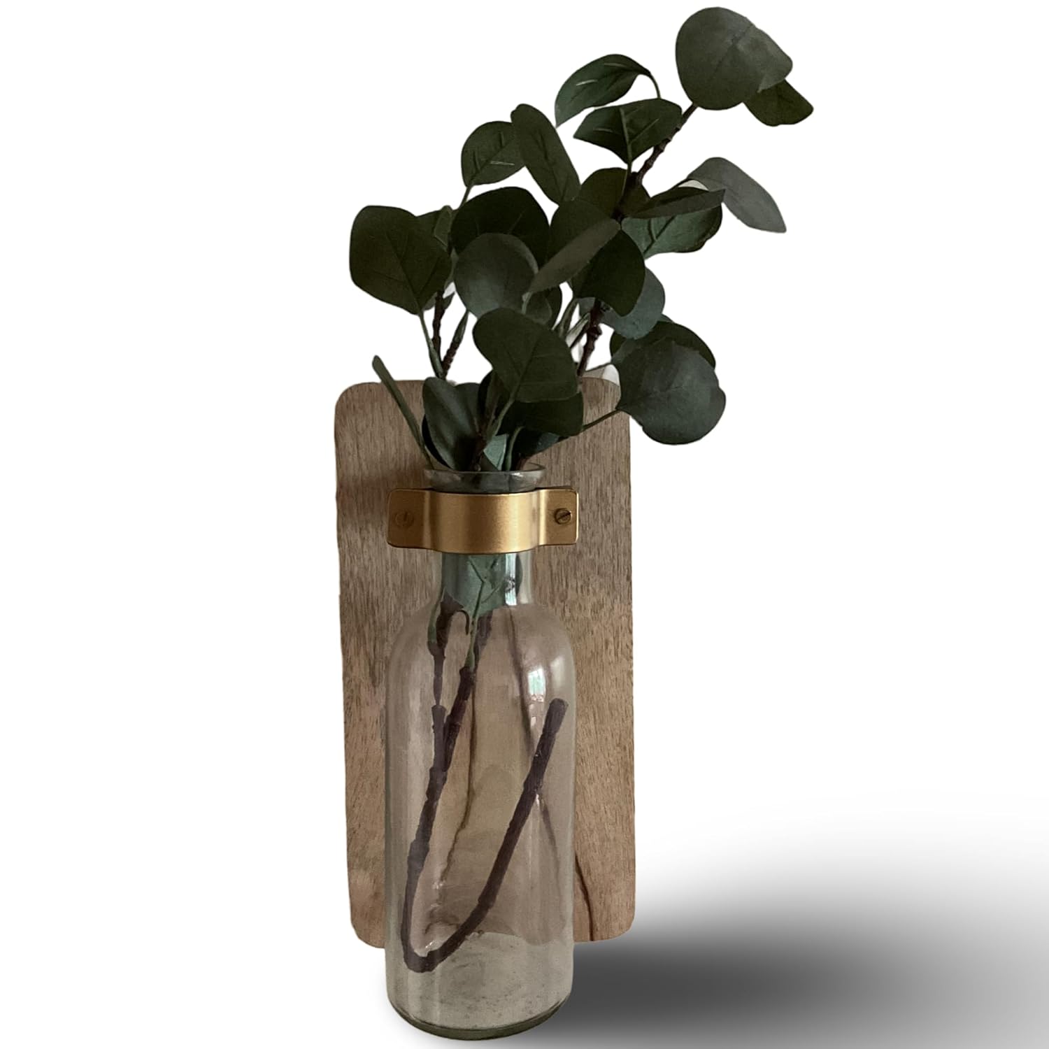 Be the first to review “Wood and Glass Bottle Vase Wall Hanging with metal clasp”